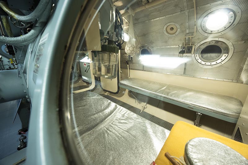 掃海艇「たかしま」は、ひらしま型の3番艇で、最後の木造掃海艇だ。この後に建造されたものは、FRP製になっている。船体に鋼鉄を使わないのは、磁気に反応する機雷があるためだ。この船は、外板が木製であるだけではなく、構造材もアルミやステンレスが使われ、船内に掲示物を貼る際には、画鋲やマグネットを使用禁止にするほどの徹底ぶりだ。就役は2008年。なお、掃海艇には、女性隊員が乗船していない。船が小さいので、女性専用の部屋を設置するだけの空間がないためだ。
