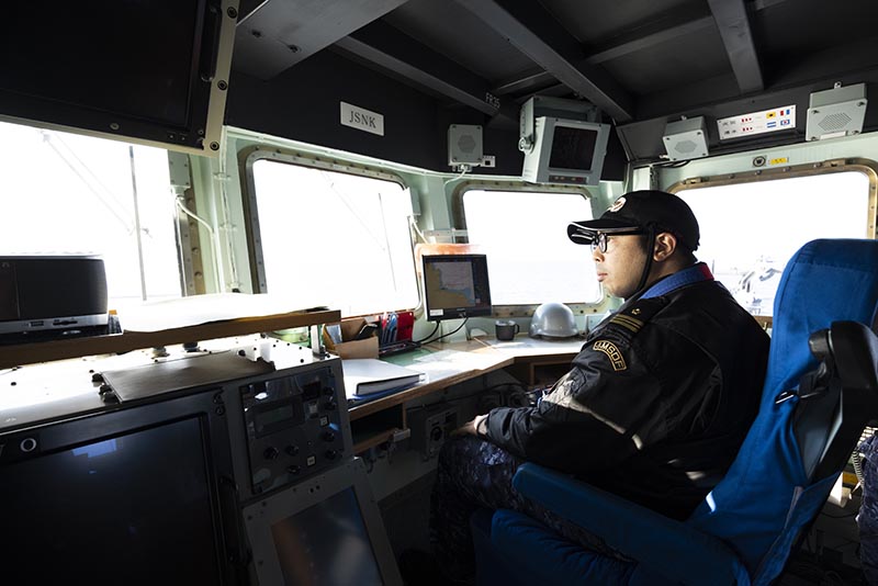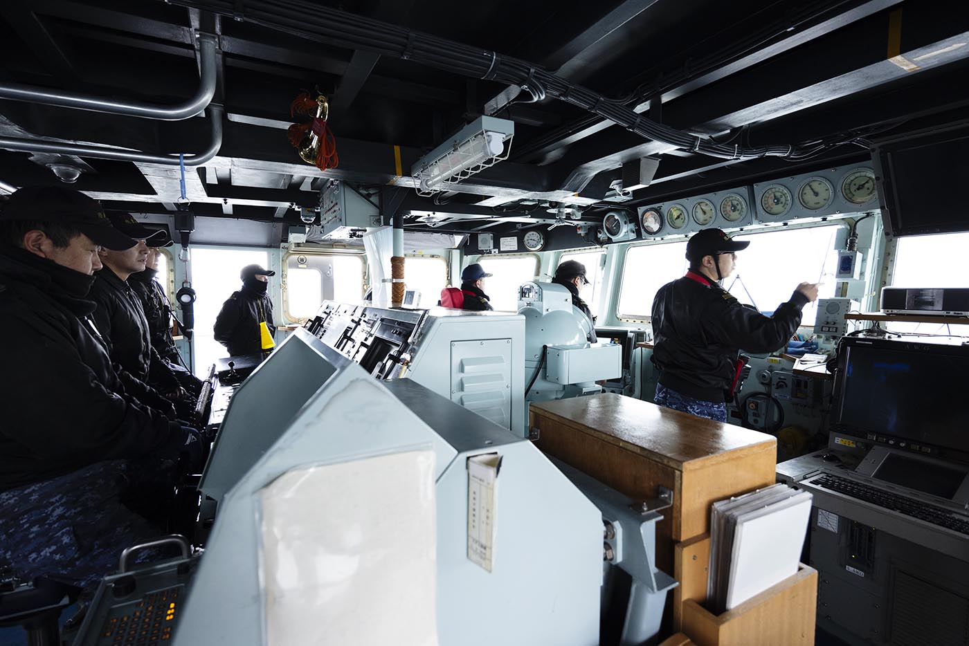 食事の後は、掃海隊群司令の池内出海将補のインタビューがあった。その中では、「世の中の状況が緊迫してきたからといって、私たちの仕事が変わるということはありません。下された命令を確実に実行することが私たちの仕事であり、いつも平常心でいることを心がけています。」と話をされていたのが、印象的だった。