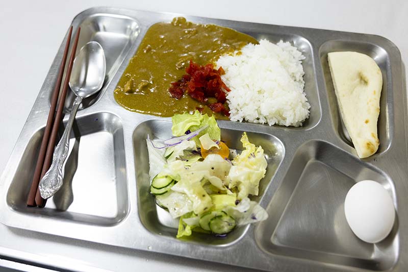 撮影の日は、土曜日であったにも関わらず、「海自カレーを食べてみたいという要望があるかと思って」との計らいにより、金曜日と土曜日のメニューを入れ替えてくださっていた。お心遣いに感謝です。美味しゅうございました。